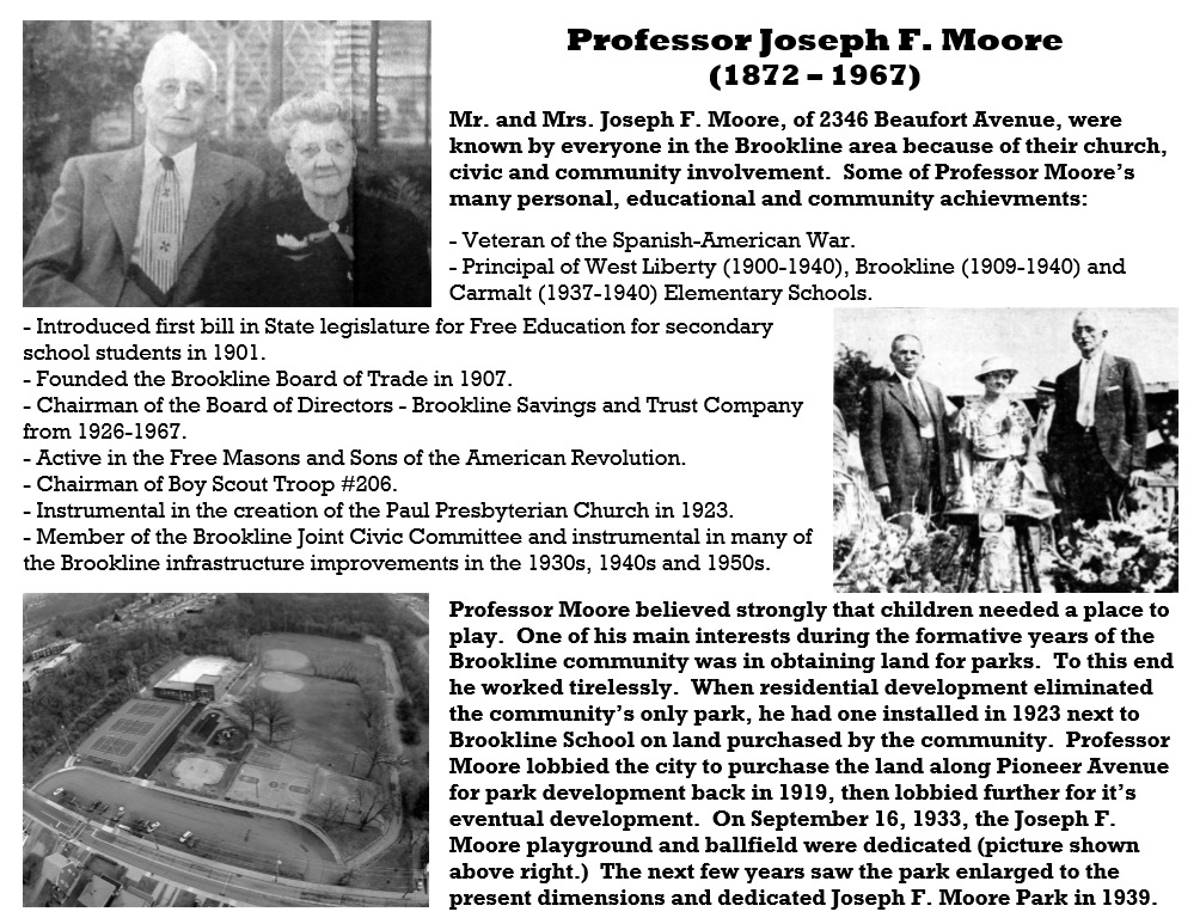 * Learn More About Moore Park's History * <><><><> <><><><> <><><><> <><><><> <><><><> <><><><> Special Thanks To Those That Helped An event of this size can only be accomplished with the steadfast help of several business and individuals who donate their resources and time to making the show a success. The Moore Park 80th Anniversay Festival was, without a doubt, the largest and most succesful community venture since the Autumn Moon Festival in 2000. Event sponsors included Guarino Group Productions, City Councilman Anthony Coghill, Brookline Together, Pittsburgh Parks Conservancy, Pittsburgh Citiparks, RedBeard's Bar and Grill, Mike T's Auto Sales, State Senator Wayne Fontana, Rich Donato - Clean Car Express, Martin Auto Sales, Martin Auto Gallery, Deboran Dattalo - Howard Hanna, State Senator Jay Costa, Dorsey Brothers, John (Buzz) Bazari - JB Properties, Robert DelGreco, Amarah Studios and Boutique, O'Brien Communications, Cindy Fascetti Rack - Keller Williams, Frank D. DeBor Funeral Home, Brookline Connection, Knight Motors, Tyler Mountain Water, Matrascia Plumbing and Heating, Slick's Bar, Pittsburgh Concert Audio, Brookline Teen Outreach, Saint Teresa of Kolkata Parish, The Todd DeFazio Show - Idiot Radio, The Medicine Shoppe and Fast Signs. Additional sponsors and food vendors included Antonio's Pizzeria, Olive Oils Pizza, Coaches Bottleshop and Grille, Kabob Mob Food Truck, Seivers Concessions, Kona Ice and Yovi's Little Bit of Chicago. Individual contributors were Joe Pino, Tim O'Brien, Denny Kennedy, Clint Burton, Scott Price, Frank "Topo" D'Amico, Tom King, Kathryn Hunninen, Mike Radley, Mickey Trapolsi-Underwood, Kathy Rudolph and Gregg Massetti. Thanks also to the those members of our Festival Team who chipped in their time in small but significant ways to help make this event possible. * Photos provided by our friends and neighbors in the community of Brookline * |
