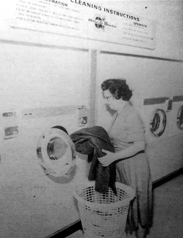 Shulman's Sunshine Center Coin-Op Dry Cleaning business opened on October 26/27, 1962 at 919 Brookline Boulevard. During the two-day grand opening, customers received a free silver dollar. The photo below shows Mrs. S. Shulman demonstrating the simplicity of using the dry cleaning machines. She is putting a man's suit coat into the dry cleaning machine as part of an eight pound load. Savings and convenience made the Sunshine Center an ideal place for dirty work and school clothes, as well as sweaters, dresses, skirts, slacks, suits, bedspreads, blankets, draperies and many other household items that require dry cleaning. * Photo from the Brookline Journal - 10/25/1962 * |