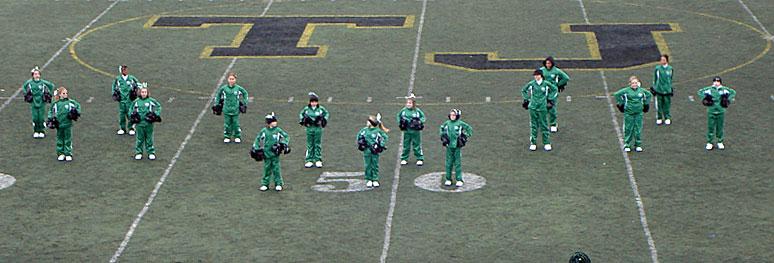 The Brookline cheerleaders braved the chilly temperatures and