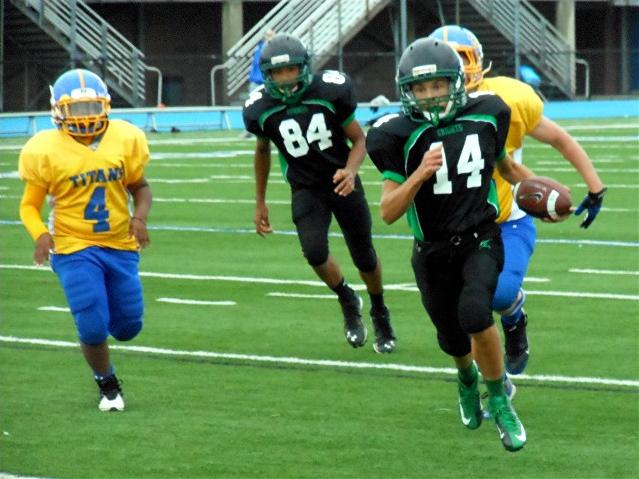 their record to 4-0 by walloping the West Mifflin Titans 40-14.