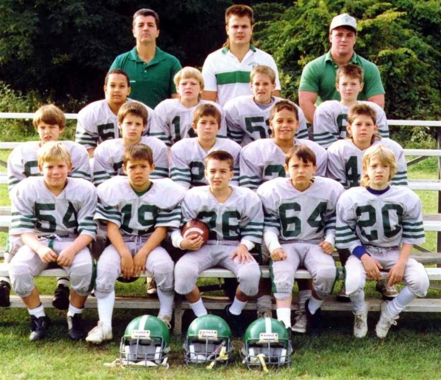 (Ages 8-9-10) Front Row: Billy Van Kirk, Robbie Moran, Russ Creely Jr, Paul Gromek, Jonathon Golembiewski.Second Row: William Derrick, Tim Storino, Mike Kenny, Jonathon Deanes, Justin Rhule. Third Row: Mike Gist, Denny Reese, Bill Esch, John Stadelman. Top Row: Head Coach Russ Creely, Coach Jary Ball, Coach Eric Graham. Click on image for a larger picture. * Photo provided by Tracy Rhule * |