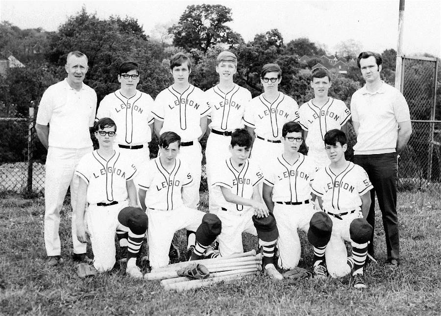 Front Row: Tom Drake, Jim Turcol, Danny Doyle, Murray Farber, Ron Sacco. Back Row: Coach ?, Mike Farber, ?, ?, ?, ?, Coach ?.