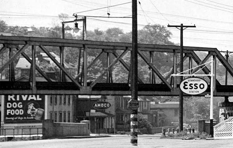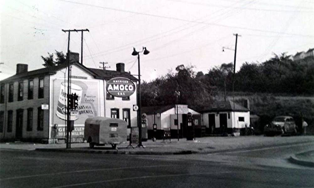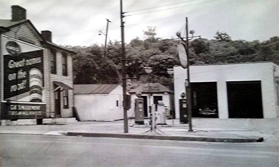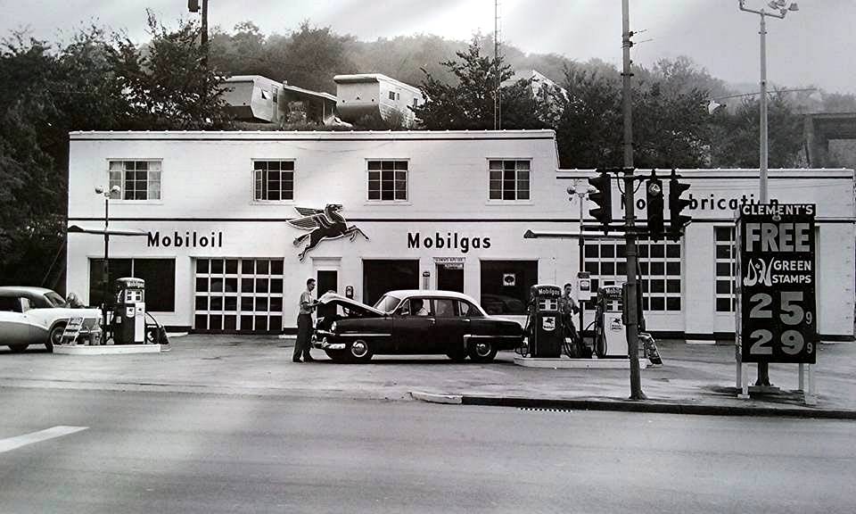 Clement's Service Station evolved over above 1945 photo.