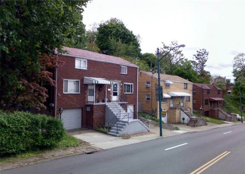 During the 1935 reconstruction of Brookline Boulevard, the hillside that stood between Pioneer Avenue, Jillson Avenue was cut away and leveled for future home construction. Three duplex homes were built in 1950: 424/422, 420/418 and 416/414 Brookline Boulevard. The homes are shown below in 2013. |