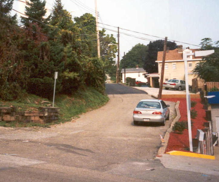 The corner of Whited Street and Ballinger Street in 1963. Ballinger is near the bottom of Whited past the Port Authority tressel. Out of the photo to the left is the old building that was once a transit stop on the old rail line. Today it is Larry's Roadhouse Restaurant and Bar. * Photo provided by Mercedes Faust * The corner of Whited Street and Ballinger Street in 2004. |