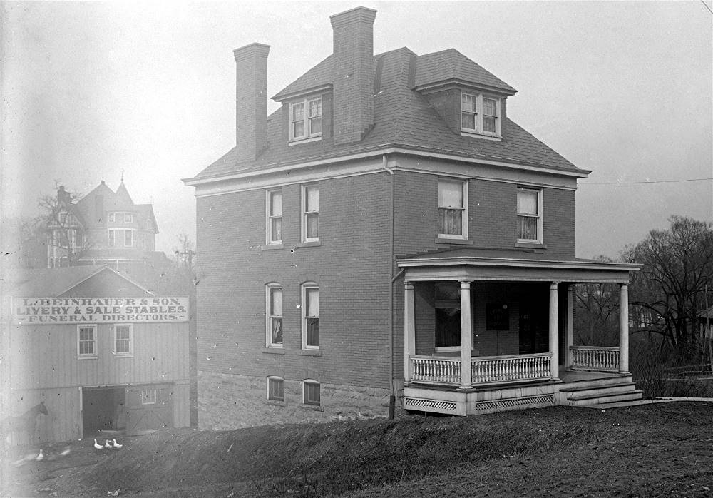 Prior to the 1915 reconstruction of West Liberty Avenue, the home was moved back away from the road and slightly further up the hill because of the widening of the improved avenue. In 1921, Beinhauer consolidated all of their facilities at this location. A new three-story mortuary was designed and built specifically for funeral services. The first of it's kind in Allegheny County, the parlor was built next to the family home along West Liberty Avenue. The new facility also included Pittsburgh’s first crematory, built behind the mortuary. Still in operation, it is the second oldest continuously operating crematory in the United States.