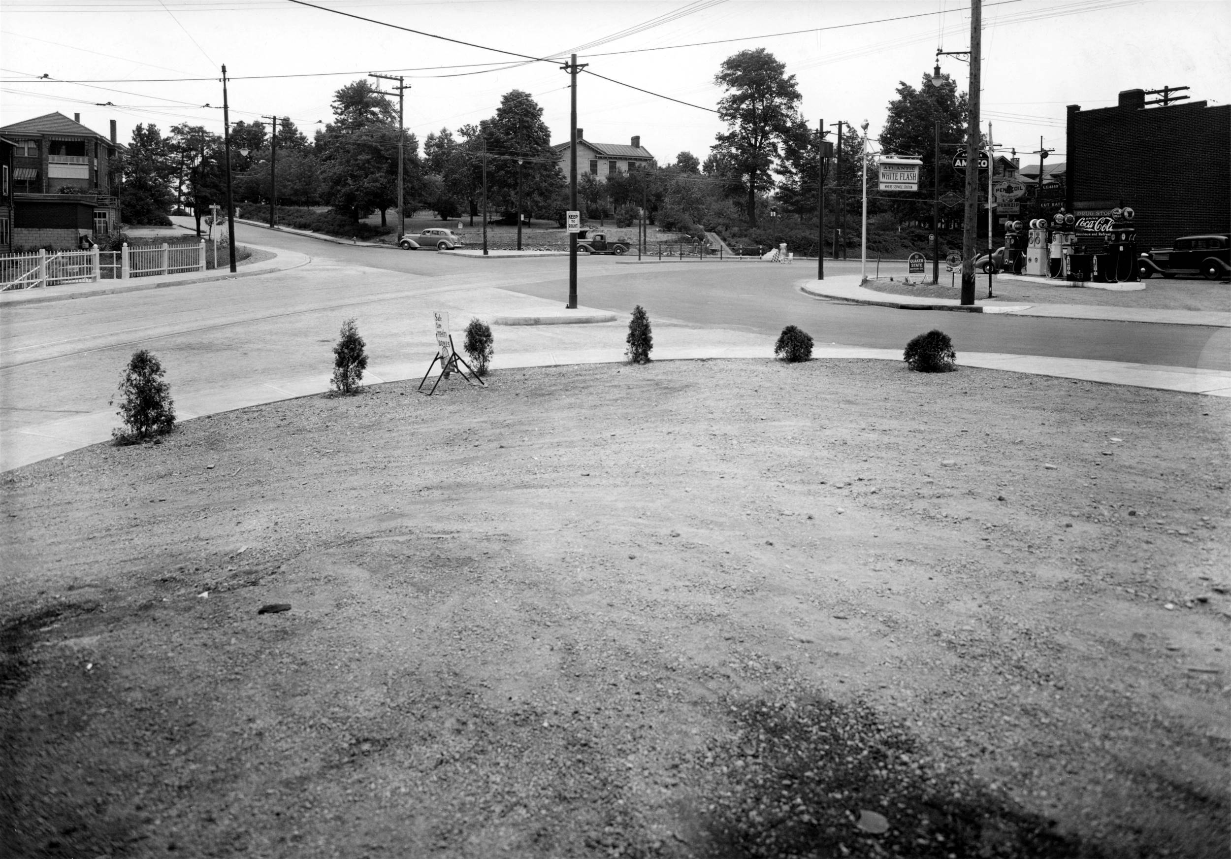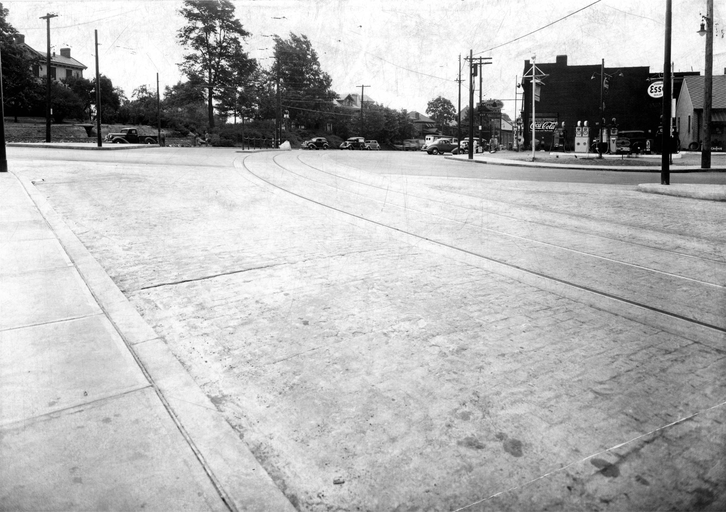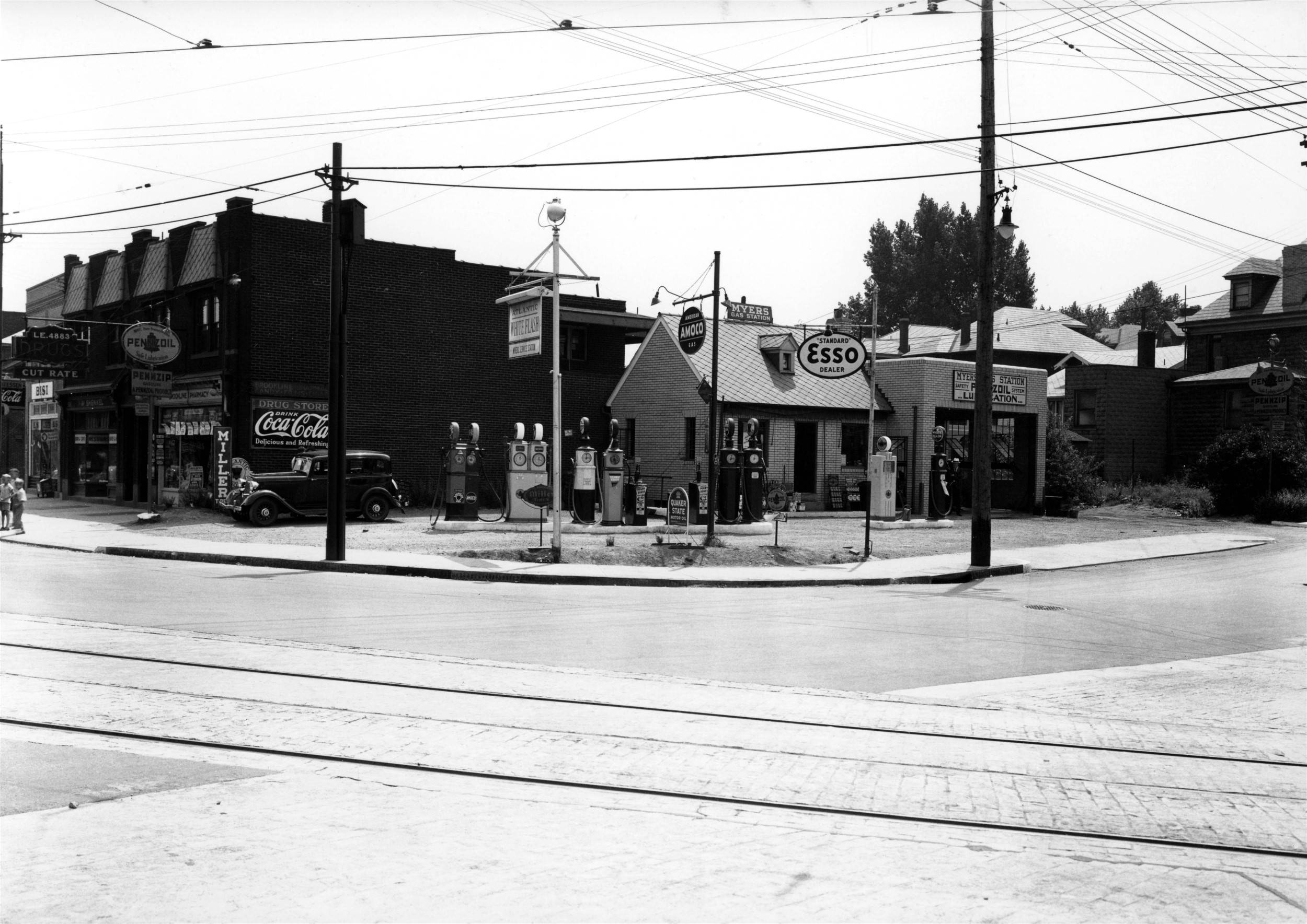 service station at the corner of Brookline Boulevard and West Liberty