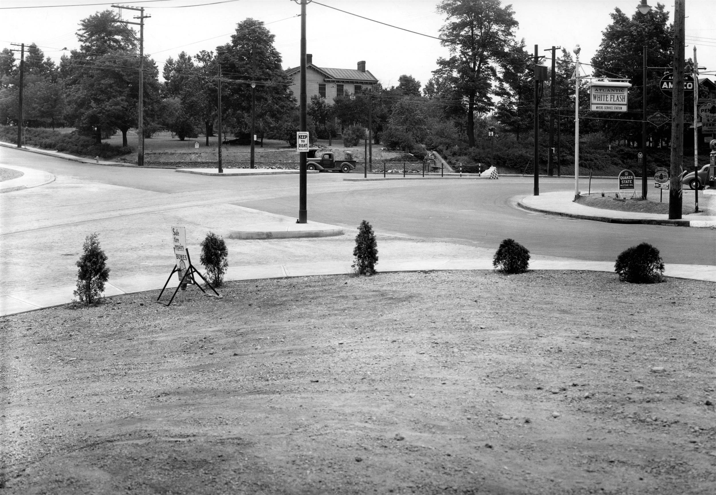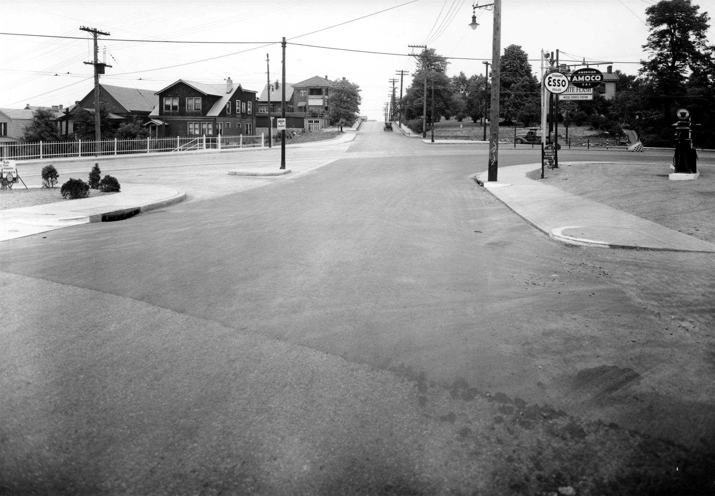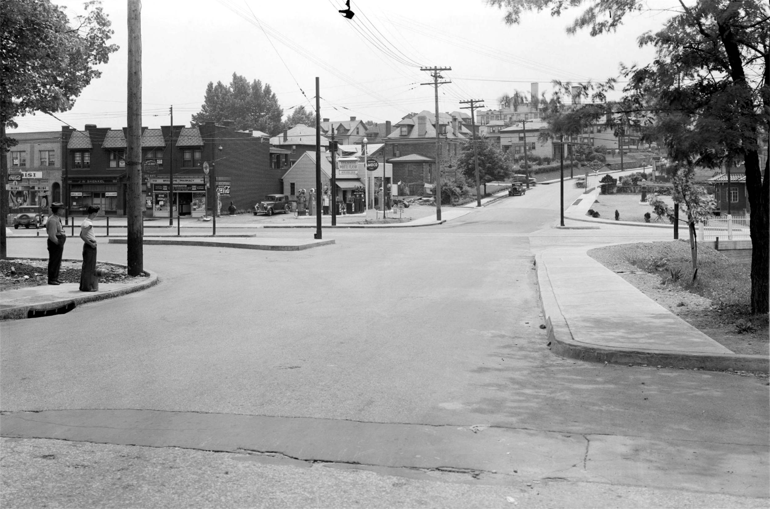 service station at the corner of Brookline Boulevard and West Liberty