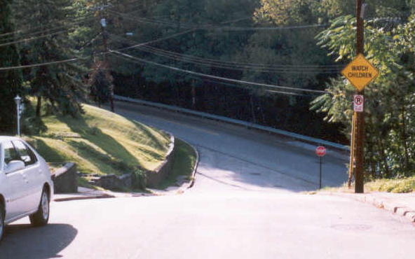 Northcrest Drive looking towards Pioneer Avenue - 1963. * Photo provided by Mercedes Faust * Northcrest Drive looking towards Pioneer Avenue - 2004. The photos are quite similar, but note the guardrail on Pioneer Avenue. In the older photo there are the old log rails with the interconnecting steel wires. I wouldn't have wanted to rely on the old fashioned rails to keep me from tumbling down the hill. Most of the old type guardrails have been removed from the Brookline area, but you can still find them in remote corners. |