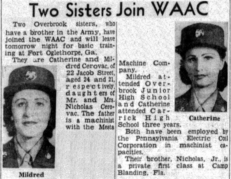 branch of service, including machinist sisters Mildred and Catherine Cerovac, who