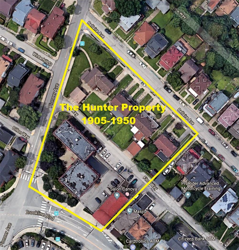 This fine estate home, built in 1845, once stood at 2519 Pioneer Avenue, along the corner with Brookline Boulevard. Shown here in November 1935, it was formerly the home of David Hunter and his family. Born in 1830, David and his parents (Daniel and Jane) lived in the Pittsburgh business district on Water Street. His father was one of the city's first councilman, elected in 1816, who also held the Street Regulator assignment in 1815. The Hunter's home was destroyed during the Great Fire of April 1845, and the family moved to a twenty-five acre Brookline location (then part of Lower St. Clair Township and later West Liberty Borough). The Hunter Farm was surrounded by two other notable local farms, that of Richard Knowlson and Ephraim Hughey. Daniel Hunter passed away two years later, in September 1847, when David was just seventeen years old. David, a life-long farmer who never married, operated the farm and tilled the land for sixty years until it was purchased and plotted for residential development by the West Liberty Improvement Company in 1905. For many years, Hunter also owned a small piece of land at the Brookline Junction that was purchased by the Pittsburgh Coal Company also in 1905. The road that now bares the name Bodkin Street was, during the West Liberty Borough years, called Hunter Avenue. By 1910, David's land holdings had shrunk to a two acre plot at the corner of Brookline Boulevard and Pioneer Avenue. After David's death at age 90 on July 8, 1920, the property passed to his niece Margaret Hunter Armstrong, who lived in the home until she died on November 3, 1937. It then passed to her daughter Margaretta. The remaining Hunter land was eventually sold, around 1950, and the home was razed. In it's place rose the Pinebrook Apartments, a commercial building that now houses Salon Canova, a new home at 2519 Pioneer Avenue and three new duplex homes along Bellaire Avenue.
