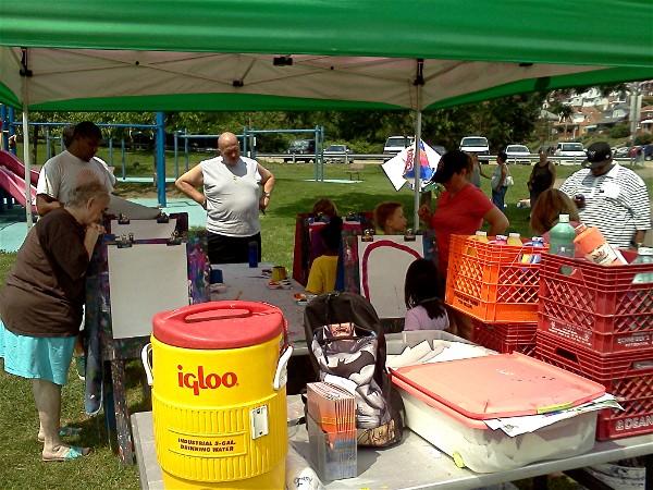 The Citiparks Roving Art Cart stopped in Brookline Park on Tuesday, July 24, 2012. The kids were treated to snacks and encouraged to express themselves with various forms of spin art, face painting and crafts. A balloon artist was present to dazzle the little ones with his balloon twisting skills. The Art Cart comes to Brookline Park once a year in late-July or early-August. For more information on the Roving Art Cart, click here. Click on images for larger pictures * Photos provided by Kathy Rudolph * |