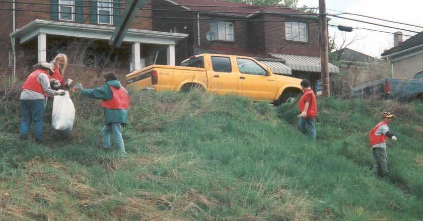 as part of the PA Cleanways "Let's Pick It Up, PA" project, collecting