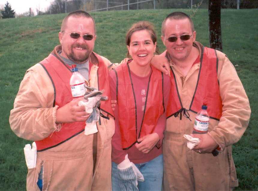 Clad in orange flourescent vests and
