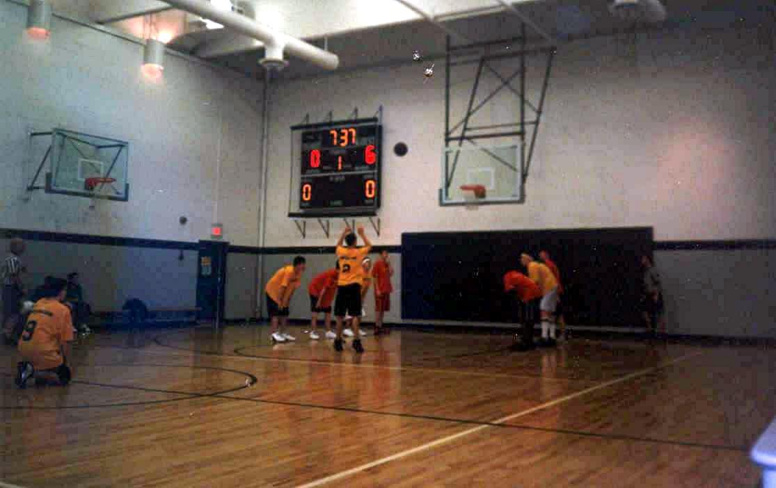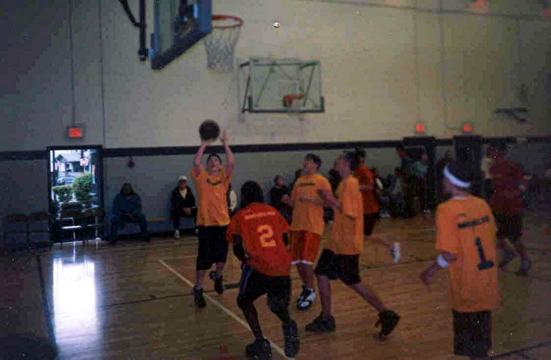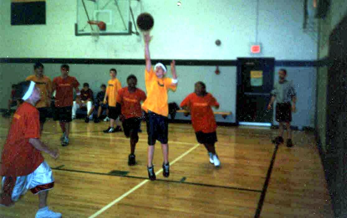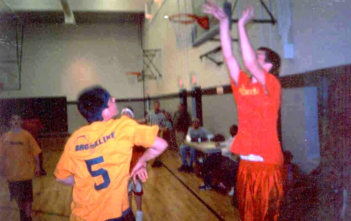 April 19, 2003 Red 20 - 19 - 17 - 26 77 Yellow 16 - 12 - 18 - 15 61 Scoring: Red - Hodgkiss 23 (10, 3-4, 0), Mott D 18 (7, 4-5, 0), Radwanski 13 (1, 2-3, 3), Giegucz 12 (4, 4-10, 0), Sullivan 11 (5, 1-1, 0), Mott J 0 (0, 0-0, 0); Yellow - Kmiecik 18 (5, 5-6, 1), Kalogeris 17 (4, 1-2, 3), Corcoran 15 (2, 2-4, 3), McGraw J 4 (2, 0-1, 0), Tsangaris 4 (2, 0-0, 0), McGraw M 3 (1, 1-2, 0), Nuovo 0 (0, 0-0, 0), Cashman 0 (0, 0-0, 0). Fouls: Red - Mott D 4, Giegucz 2, Radwanski, 2, Hurley 2, Sullivan 1; Yellow - Kalogeris 5, Corcoran 3, Tsangaris 3, Kmiecik 3, McGraw J 2. Congratulations to the 2003 Brookline 15-Under Hoops Champions, Hodgkiss Red: Captain Bo Hodgkiss, Darrelle Mott, Geoffrey Giegucz, Eddy Hurley, Doug Sullivan, Jay Mott, C.J. Radwanski and Frank McGrath. Photos from the Championship Game