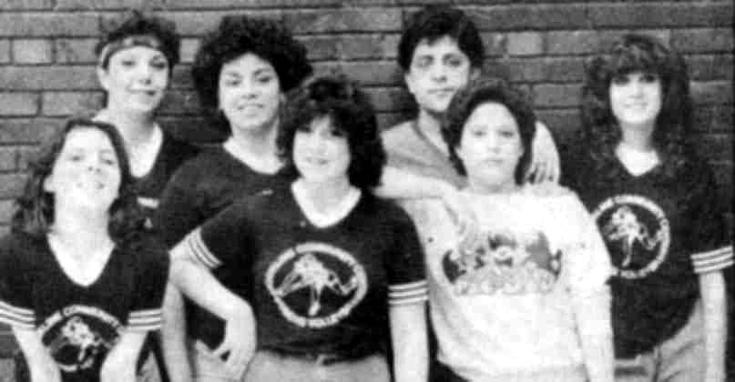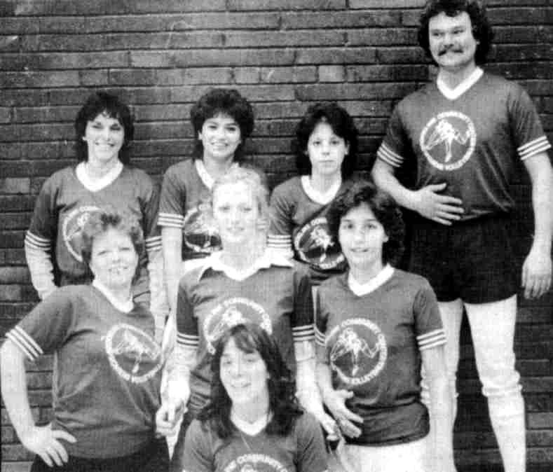 The Brookline Recreation Center Women's Volleyball League entered its 3rd season in 1982. The champion that year was coached by Jeff Buskirk and Danny O'Brien, and the team captain was Linda Phillips. The teams and the players: Team A - Front: Jackie Raffale. Middle: Kathy Crowley, Dorothy Rothey, Patty Moroney. Back: Cindy Fessette, Ronnie Wachter, Coach Dave Smitherman. Team B - Front: Lisa Bonini, Carol Moratto, Noreen Dugan. Back: Lynn Manko, Rose Buchner, Sharon Graham, Renee Arduini. Team C - Front: Elaine Stewart, Kim Pelone, Lele Cahill. Back: Vicki Leone, Michelle Trapolsi, Coach Michael Trapolsi, Lisa Phillips. Team D - Front: Cindy Harney, Denise Smith, Janice Giegucz, Patty Anania, Janice Moratto. Back: Doris Graham, Coach Jeff Buskirk, Linda Phillips, Coach Danny O'Brien, Michelle Trill. Click on images for larger pictures. * Reprinted from The Brookline Journal - 4/8/82 * |