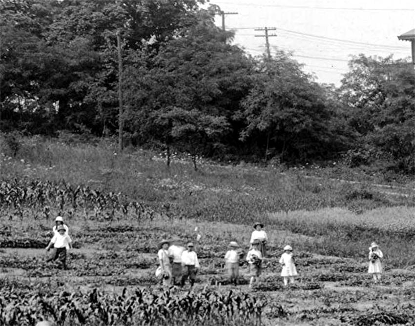 In 1909, the year Brookline Elementary School opened, the Pittsburgh Playground Association and the Board of Public Education began a new initiative to introduce local school children to nature studies and gardening. There was a belief that children in the heavily industrialized city of Pittsburgh had lost touch with any practical knowledge of the rural activities of gardening and nature study. Professor Joseph F. Moore, principle of both Brookline and West Liberty Elementary School, said "School gardening not only brings material benefits but gives the youngsters a better knowledge of nature, and acquaints them with the problems of the farmer." The gardening program was piloted by Professor Joseph F. Moore, the principal at Brookline Elementary School. The site chosen for the project was a large plot of undeveloped land that bordered Wedgemere, Rossmore, Gallion and Pioneer Avenues. Located next to a baseball field and playground, the school garden measured 273 x 372 feet. Under the supervision of a member of the Pittsburgh Playground Association and teachers from the elementary school, the crops were planted and cultivated by the student population, along with some volunteer parents. The children grew a wide variety of vegetables. The planting season began in the summer, and teams of students spent their vacations planting and maintaining the garden. It didn't take long for the kids to master the art of growing their own food. They tended to the crops both in their spare time and during school breaks. After the school year ended, the kids continued the gardening program, taking time out from their summer vacation twice a week to work in the field. The crops they harvested were used for school lunches, with the excess either sold to local merchants or donated to local food kitchens. Competitions were also held with other Pittsburgh Public Schools, with prizes handed out to those with the prize green thumbs. The overall gardening experience became an invaluable part of the student curriculum and a favorable selling point for prospective families moving to the area, as highlighted in real estate ads from that time period. Most families at the time had home garden plots to help supplement their food stores. The school gardening project taught the kids about responsibility and accountability in addition to giving them valuable insights into the Brookline community's rural agricultural roots. The Brookline Elementary School Garden was mentioned in the City's 1912 annual report on Pittsburgh Playgrounds, Vacation Schools and Recreation Parks. John Randall, the Supervisor of Nature Study and Gardening, reported on the status of the project. Some excerpts from his report are reprinted here: "This has been the most successful garden season. The heavy rainfall increased the production of leaf and root crops and the early, short dry spell came in just the right time to give a good yield of beans. It has been reported by one teacher that local farmers have stopped carrying vegetables and beans that were grown in the neighborhood at the time that crop was ripe in our gardens." "Mr. Wiseman, the coordinator assigned to the Brookline garden, reported student attendance throughout the year at 4680, and submitted the following list of products raised through September 15th. He estimated that as much more was harvested by the end of the growing season." Beets - Eleven hundred dozen. "On the evening of September 18th, a corn roast was given by the children of Brookline to their parents. Over five hundred old and young people met at the garden to dance about the fire. Over eight hundred ears of corn were served and all were pleased with the work of their young gardeners." From the looks of things, these kids were first-class farm hands. The photos above were taken on July 18, 1916. The garden remained at its original location until the early-1920s, when residential development along Gallion and Rossmore forced Brookline Elementary to move the garden to a field adjacent to the school building, where it remained for many years.