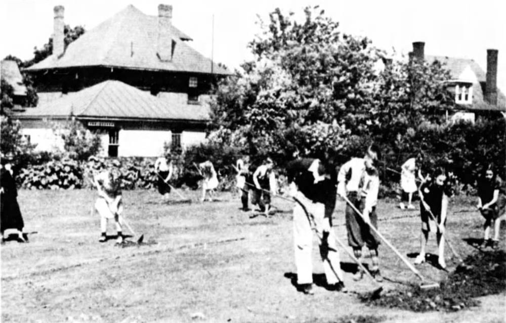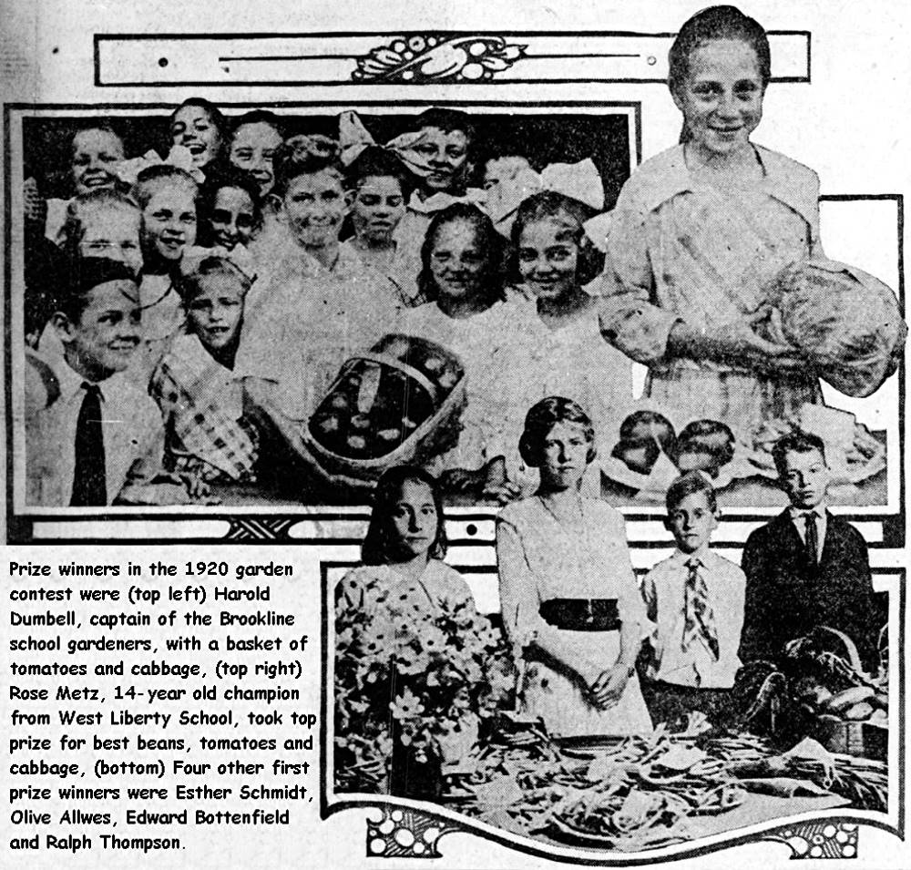On September 23, 1920, the Pittsburgh Post-Gazette reported on a Garden Show hosted at Brookline School, featuring a joint exhibit of the best selections from vegetable gardens maintained by pupils of the Brookline and West Liberty Schools. "Rose Metz, aged 14, a pupil in the West Liberty School, won three first prizes, one each for cabbage, tomatoes and beans. Other first prize winners of the West Liberty School were Lucille Berger for carrots and Ruth Hixenbaugh for summer squash. The West Liberty school garden is located along Pioneer Avenue across the street from the school." The Brookline school garden contest was also marked with a fine show of vegetables. The winners of first prizes were Ralph Thompson for beans, Esther Schmidt, beans; Olive Alwes, tomatoes; and Edward Boltenfield for carrots. Harold Dumbell is captain of the Brookline School garden, located along Pioneer Avenue at Rossmore." The September 26, 1920, the Pittsburgh Daily Post ran a long feature on the 1920 competition, which we've copied here: A garden produce exhibit was hele in the Brookline public school last Wednesday night. Now that in itself is nothing remarkable, to be sure, but it wasn't an ordinary exhibit. All of the members of the vegetable tribe were present - all that are listed in the seed catalogues, and then some. There were tomatoes that looked like balloons, beans large enough to choke the most gluttonous of thieving fowls, cabbages, peppers, radishes, potatoes, squashes, onions, beets, carrots, cucumbers, egg plant, lettuce, Swiss chard and all the rest of the garden aristocracy. The exhibits filled two long tables, which trembled under the weight of them. Each article was polished until it glistened in the electric light. Some were placarded and bedecked with blue, red or white ribbons. Pupils of the Brookline and West Liberty schools raised the produce on the plots they worked during the summer. The exhibit was held under the Department of Nature Study and School Gardens of which John A. Hollinger is the director. One day last May the ground adjoining the Brookline institution was divided into miniature farms, each 8 1/2 by 16 feet, under the direction of Principal J. F. Moore. There were just 104 of the little plots, and they were apportioned to as many pupils. The same procedure was undergone at the West Liberty school, which started 88 embryo farmers in business. Each young tiller of the school soil then decided upon a vegetable that he of she favored, and lo! the race was on! Through the spring and the too quickly terminated vacation the young agriculturalists plowed, hoed, raked, trapped bugs in their lair, gathered weeds when they got ripe, and did all of those things which have given hours of pleasure (?) to most every enterprising suburbanite. In the course of time queer things began to shoot up out of the ground which were not weeds, gratification was brought to young hearts and a bumper crop was predicted. And while the youngsters were busy, their parents caught the fever and began to steal the farming paraphernalia after bedtime. They made home gardens and community gardens, and in their spare time went over to talk with the kids about the possibilities of a drought. Brookline and West Liberty were farming! Last Tuesday the children's toil ended. The final trip to the gardens was made (the last before the end of the competition) and the young ones gathered their choicest products for the exhibit. Then, after weeks of hopeful waiting, the awards of the judges were made. Out of the eager throng of youthful farmers and farmerettes there emerged one Rose Metz, 14 years old, champion agriculturalist of the two schools. Rose, with the beans, tomatoes and cabbages that she had protected throughout the long summer against bugs, weather and West Liberty's domestic animal tribe, won three first prizes. With the ribbon-winning vegetables before her, Rose shyly explained the great secret last Wednesday. "It's not hard," she confided. "All you've got to do is keep the weeds and bugs away. I've had lots of fun doing it." - she stroked the cabbage head fondly - "these are my pets." All of the children appear to have had "lots of fun" doing it. In the school hall, as part of the exhibit, were the garden utensils which were used. Hanging on the shaft of a diminutive plow was a placard marked "Our Field Artillery." More than one potato used in the exhibit is a household pet, and several of the spuds have been christened. Other prize winners are: Brookline school - First prizes, Captain Harold Dumbell, Esther Schmidt, Olive Allwes, Edward Bottenfield and Ralph Thompson; second prizes, Theresa Shervenski, Alice Fisher and William Davis; third prize, Clifton Bradshaw. From the West Liberty school - First prizes, Rose Metz, Ruth Hixenbaugh, Lucille Berger, Jean Francis, Mary Edmonds and Charles Magnani; second prizes, Edward Walter, Helen Bartsch and Mary Edmonds; third prize, Edith Nordquist. Part of the garden produce raised will be given to the children to take home. The rest will be distributed among the schools of the city that did not have gardens of their own, for use in the cooking departments. In addition to one day's harvest which resulted in the great quantity of vegetables used in the exhibit, $516.65 worth of produce was sold during the summer. This amount was gotten from the crops of the school and community gardens. On June 12, 1938, the Pittsburgh Press ran a full page article on the Public School gardens and featured photos of the kids from Brookline Elementary. The photos show the more recent garden location, next to the school, with students preparing the garden for the summer season.