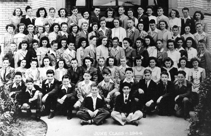 This is the graduating class of Brookline Elementary School in 1944. Top Row: (Left) Betty Graham, Bob Smith, Gertrude Callanon, Joe Hug, Rosemary Reder, Jack McClain, Mildred Gorra, Leroy Cooper, Janet Beihey, Bill Phillippi, Ann Taylor, Dan Christian, Carol Henry, Grant Cooper, Mary Haver, Ray Steeb, Lois Braden. 2nd Row Top: (Left) Carol Wesley, Mary Jane Hill, Bill Fineagle, Sandy Weber, Bill Thompson, Jewel Kohler, Jack Little, Doris Thumm, Jim Headley, Emmy McCandless, Ed Bushee, Shirley Pfaff, Earl Rackey, Joan Curran, Bill Reedy, Ruth Fatkin, Bert Black, Portia Steffler, Bill Seiling. 3rd Row Down (Left) Walter Hamm, Martha Allison, Dave Johnston, Jane Johnson, Bill Fortsyth, Katherine Dumont, Jim Matthews, Mary Lou Easton, Bob Graham, Lois Jane Gould, Chuck Chiodo, Doris Donovan, Bill Shaw, Shirley Hambly, Lee Grant, Thelma Cruikshank, Dick Prestia, Gloria Guyer, Jimmy Hill. 4th Row Down (Left) Hal Onsmond, Doris Forry, Rae McClain, Lois Voight, Barbara Williams, Jack Glascoe, Ruth Kunst, Jack Dahlinger, Edna Weber, Leslie Daschield, Doris Lucchino, Shirley Kennalty, Betty Parrish, Marilyn Whitfield, Shirley Guest. Front Row (Left) Bob Brevard, ..., Ken Williams, Bill Finnerty, Ted Johnson, ..., Jim Rice, ..., Paul Hoops, Bob Evans, Walt Fleming, Leon Zolbroad. * Photo and information provided by Shirley Johnson * |