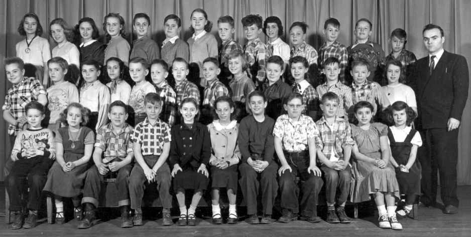 This is the sixth grade class at Brookline Elementary, taken in February 1952. Members of the class were: Dick Campbell, Nancy Melan, David Griffith, Donald Larson, Mary Richards, Jim Ragano, Jerrie Lee Wolf, Marlene Farber, Donald Hurley, Linda Lee Lederer, Edgar Dowling, Ray Burtner, Carol Turner, Jack Mills, Patricia Delaney, Fotain Kackons, Ledley Hartner, Ronald Platt, Clifford Watterson, Buddy Auen, Jeannine Barchfeld, LeVonda Rhodes, Ellen Clutter, Janet Johnson, Robert Depp, Paul Tokey, John Bell, Janies Hiedt, John Willans, Carol Turner, Edwin Dooley, Billy Karn, Susan Goldstein, Ronnie McDermit, Evangleos Gemelos, Richard Pomrenke, Nancy Sallach, Jimmy Lowen, Lefty Monahan, Donna Milagin, Ronald Platt, George Best, Billy Keton. The teacher is Mr. Schmunk. Click on image for a larger picture * Photo provided by Mary Gallagher * |