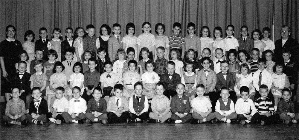 Kindergarten classes at Brookline Elementary in April 1962. The teachers are Mrs. Cruikshauh and Mrs. Gaertner.