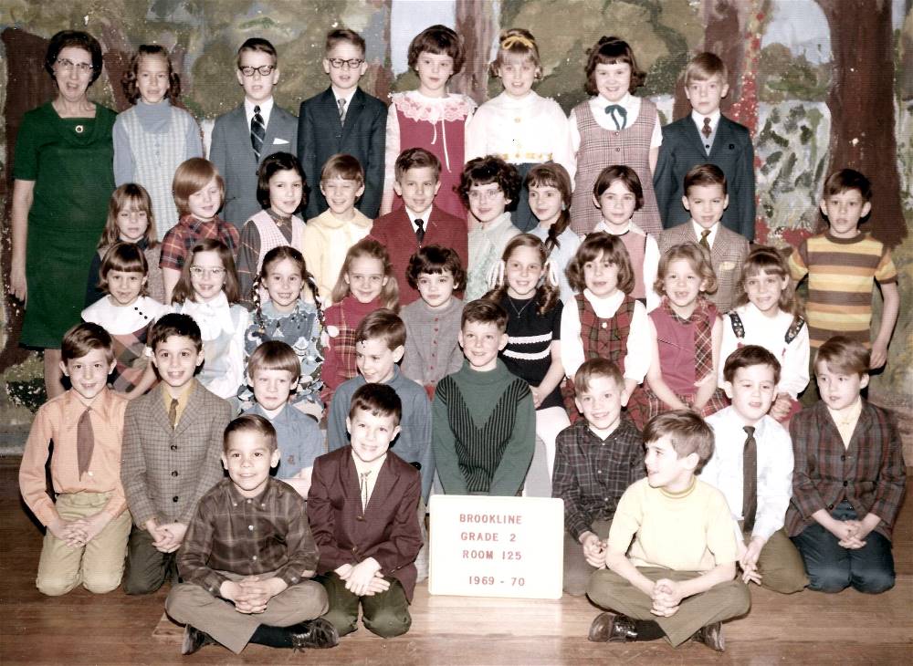 One of the 2nd Grade classes (Room 125) from the 1969-1970 school year at Brookline Elementary.