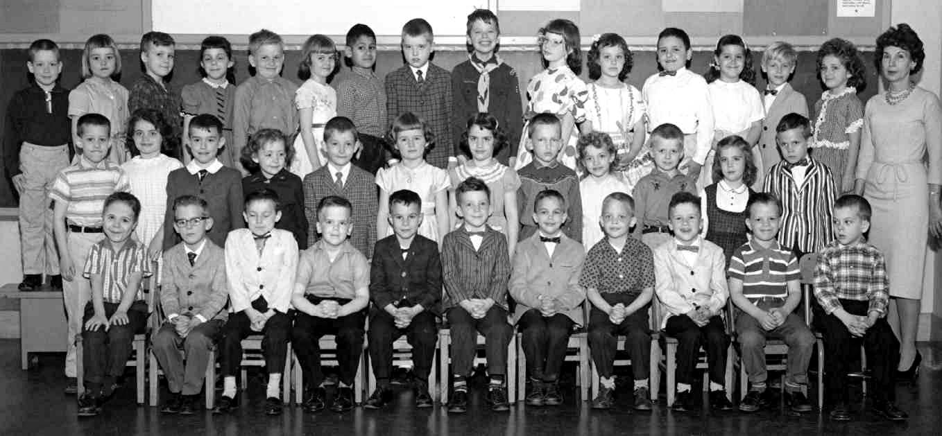 Here is a 1962 1st grade class photo from Carmalt Elementary School. The teacher is Mrs. Duffett.