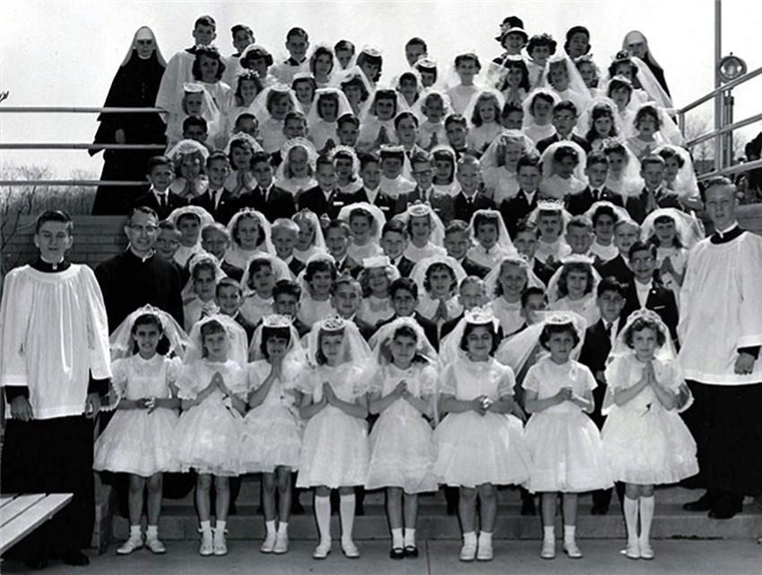 Second graders of Our Lady of Loreto Parish after receiving First Holy Communion in 1970.