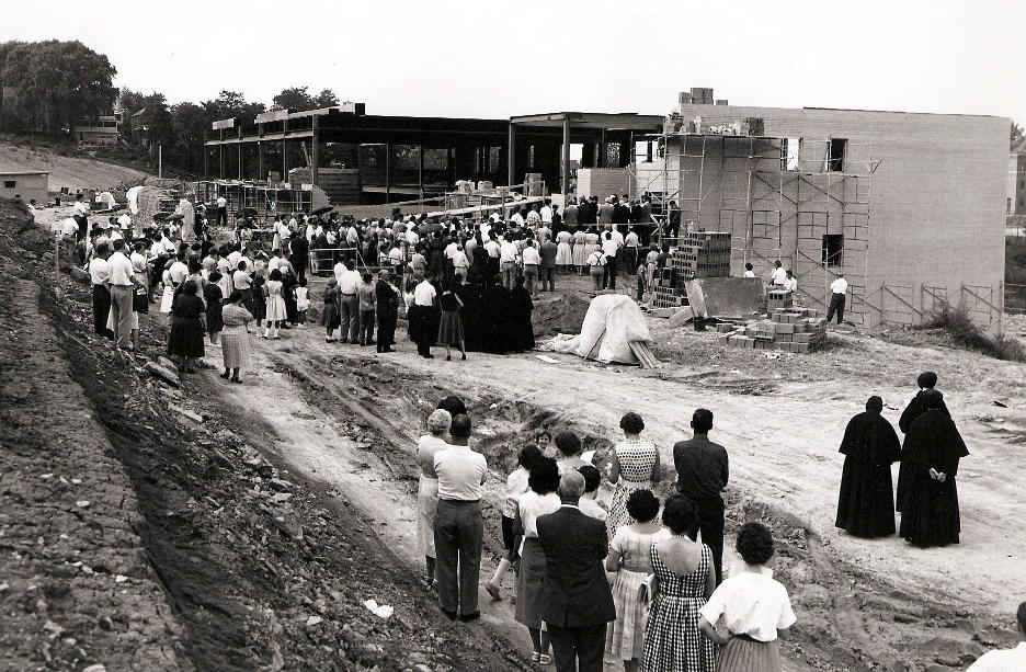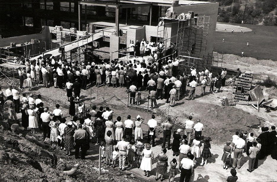 Construction began on the new Our Lady of Loreto Church/School in June of 1961. On September 24, 1961, the cornerstone was laid. The ceremony was conducted by Monsignor Carl P. Hensler and Monsignor Jacob C. Shinar, along with Loreto's pastor Father Arthur Garbin. All parish families were asked to send a medal or a family memento to be sealed in the cornerstone. Construction continued for another year. The completed structure was dedicated August 22, 1962. Click on images for larger pictures * Photos provided by Our Lady of Loreto Archives * |