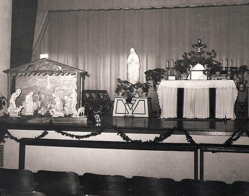 Christmas 1959 was a special time for Our Lady of Loreto parish. It was the first Christmas for the new church and the decorators did a wonderful job setting up the altar for mass. Click on image for a larger photo * Photo provided by Our Lady of Loreto Archives * |