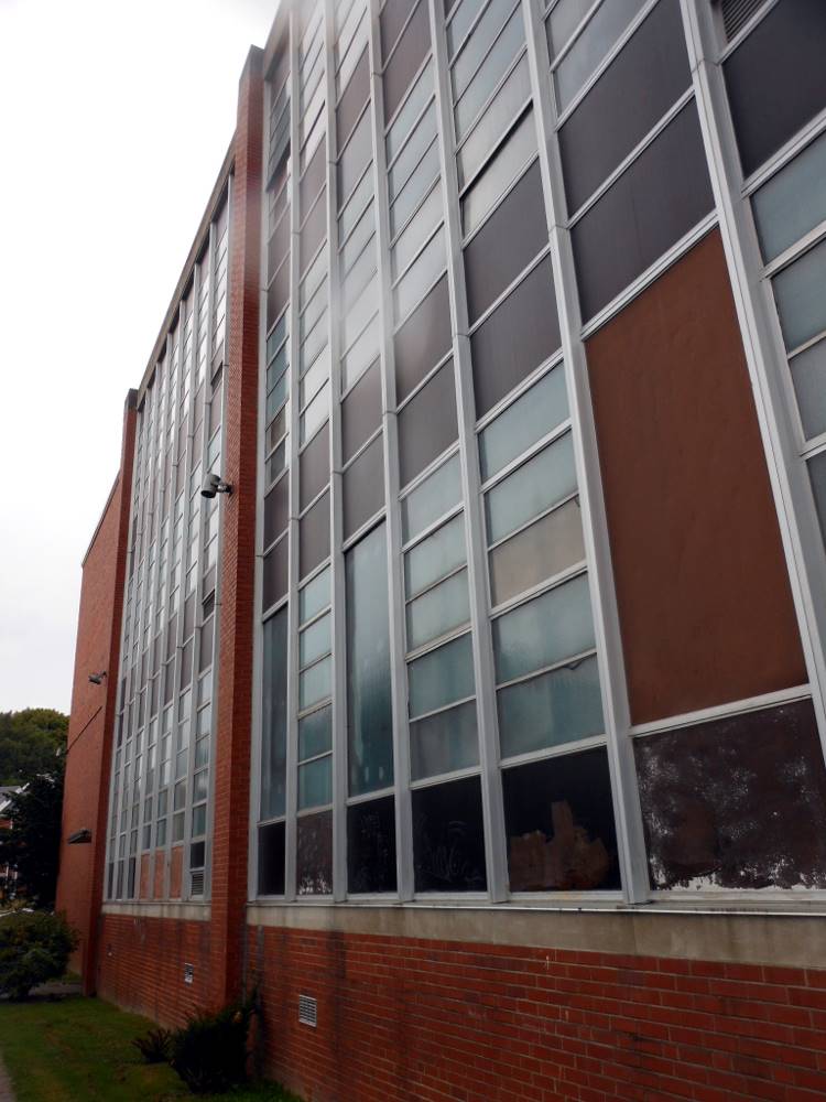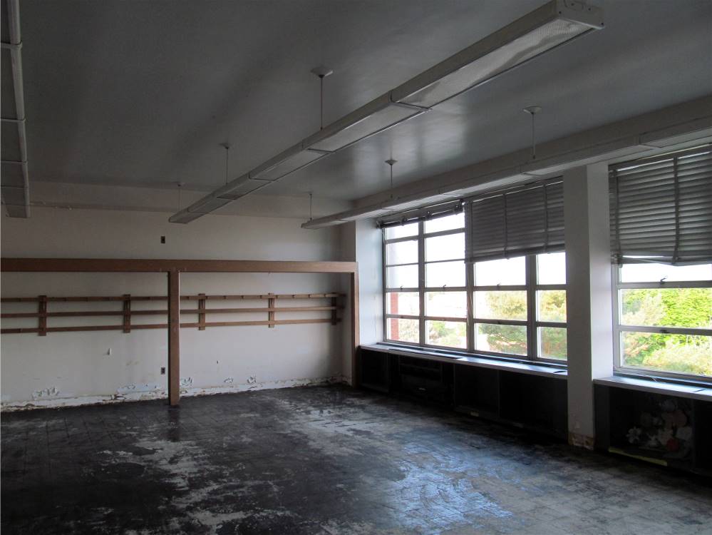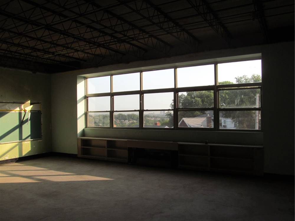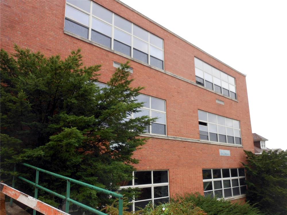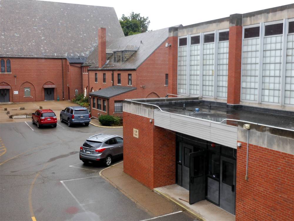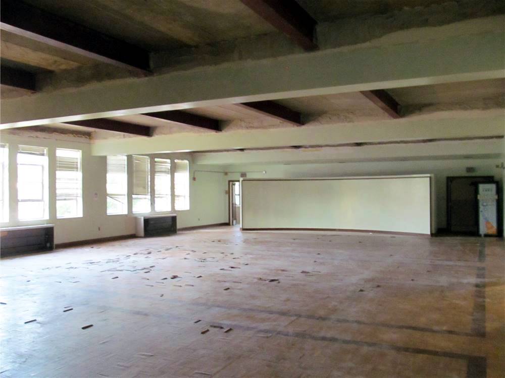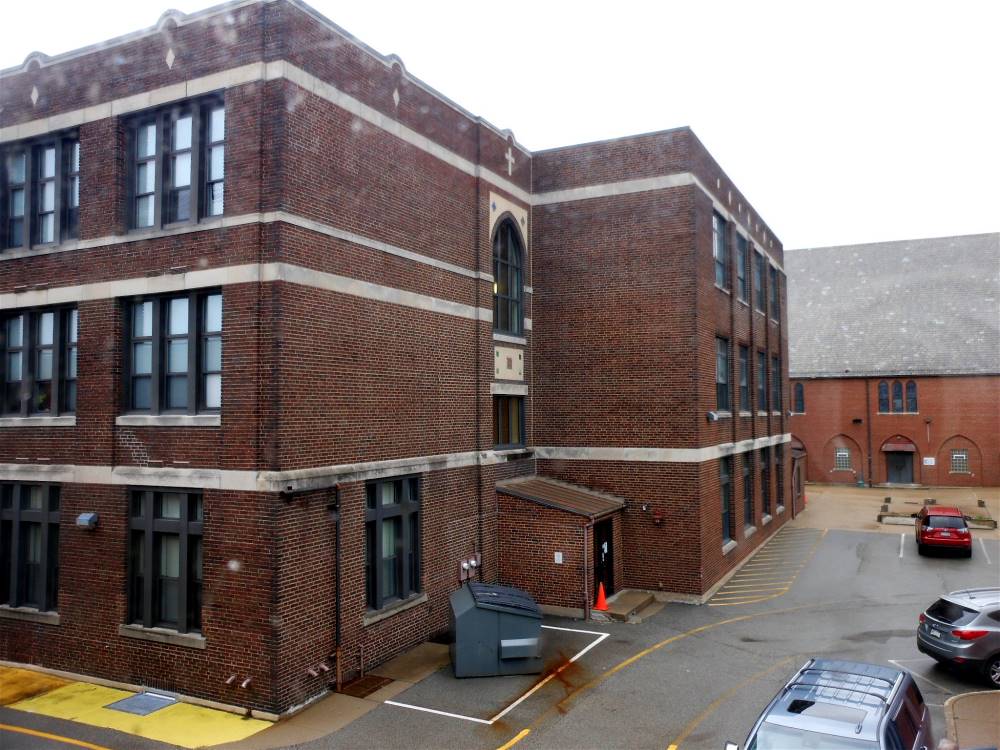 Here are some photos from September 2020 showing the condition of the Resurrection Activities Center/Middle School prior to the planned demolition of the building. Resurrection School opened in 1912. The original structure was enlarged three times as the student population increased. The first section of the adjacent middle school, with six classrooms, was built in 1957. The Activities Center followed in 1964/65. The Activities Center contained seven classrooms, a meeting and banquet hall (The Garden Room), a library, a large garage and an gym/auditorium with boys and girls locker room facilities. For over three decades the Activities Center/Middle School building was alive with activity. However, due to declining enrollment, the school closed in 1996.