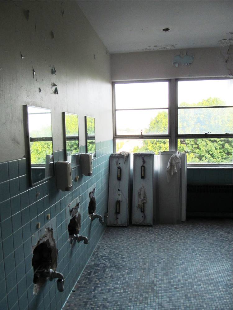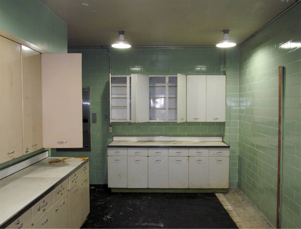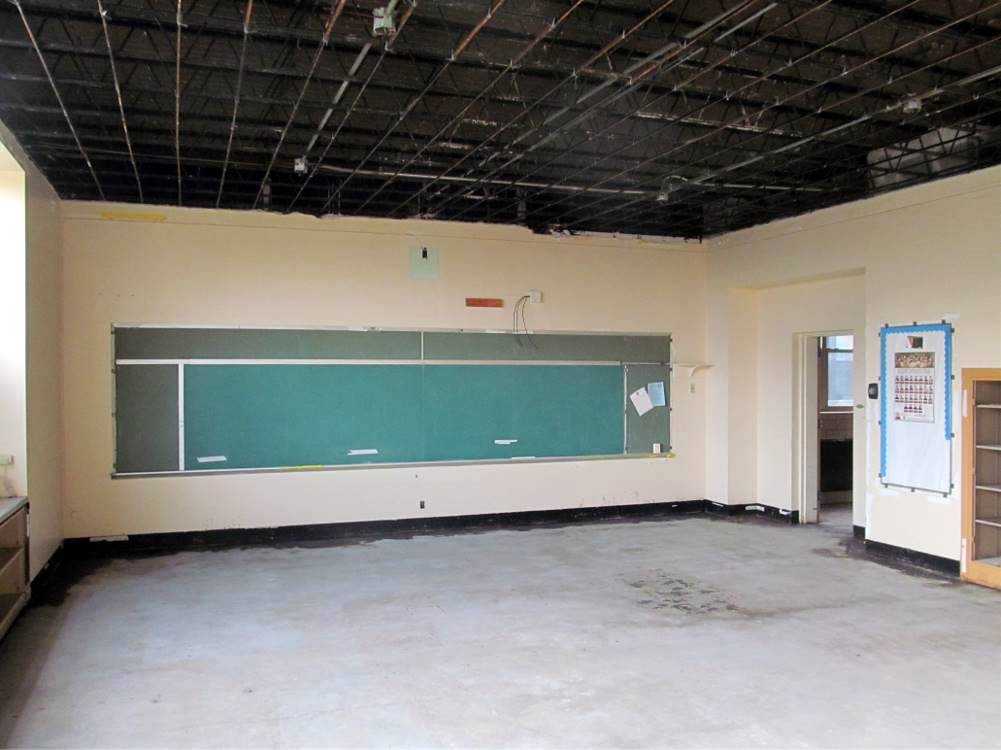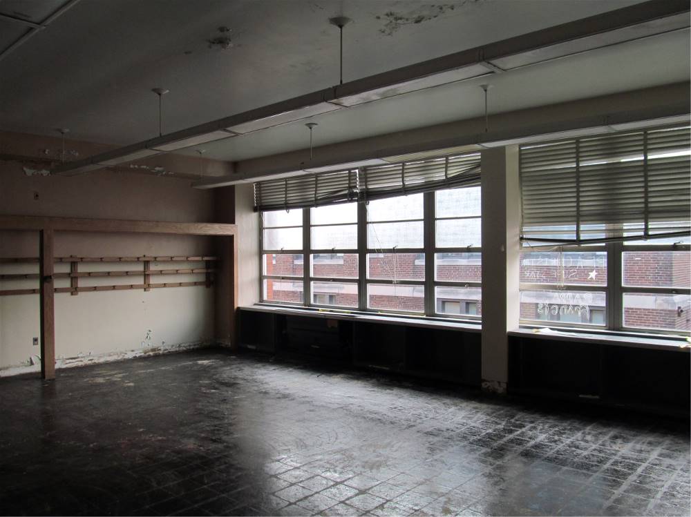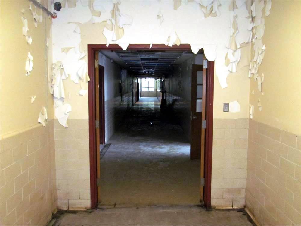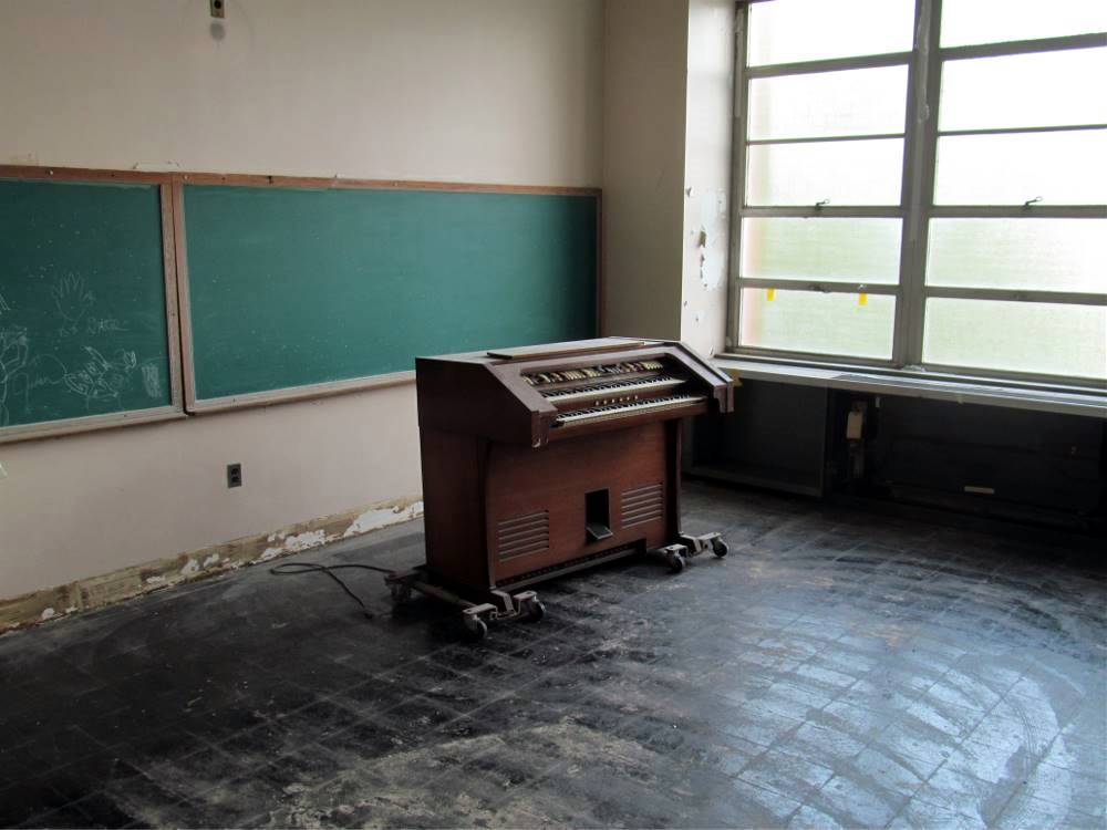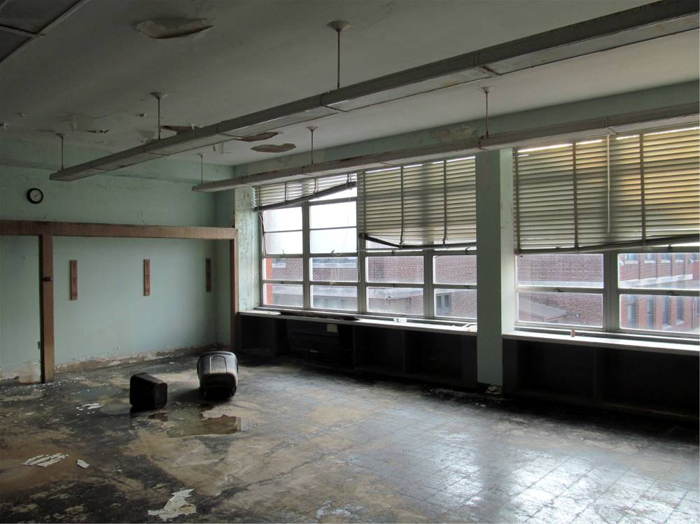 Here are some photos from September 2020 showing the condition of the Resurrection Activities Center/Middle School prior to the planned demolition of the building. Resurrection School opened in 1912. The original structure was enlarged three times as the student population increased. The first section of the adjacent middle school, with six classrooms, was built in 1957. The Activities Center followed in 1964/65. The Activities Center contained seven classrooms, a meeting and banquet hall (The Garden Room), a library, a large garage and an gym/auditorium with boys and girls locker room facilities. For over three decades the Activities Center/Middle School building was alive with activity. However, due to declining enrollment, the school closed in 1996.