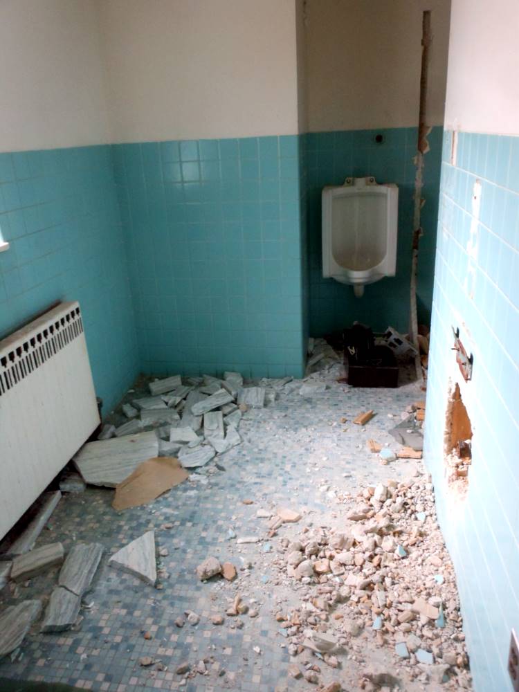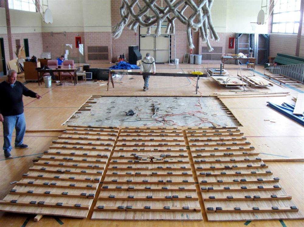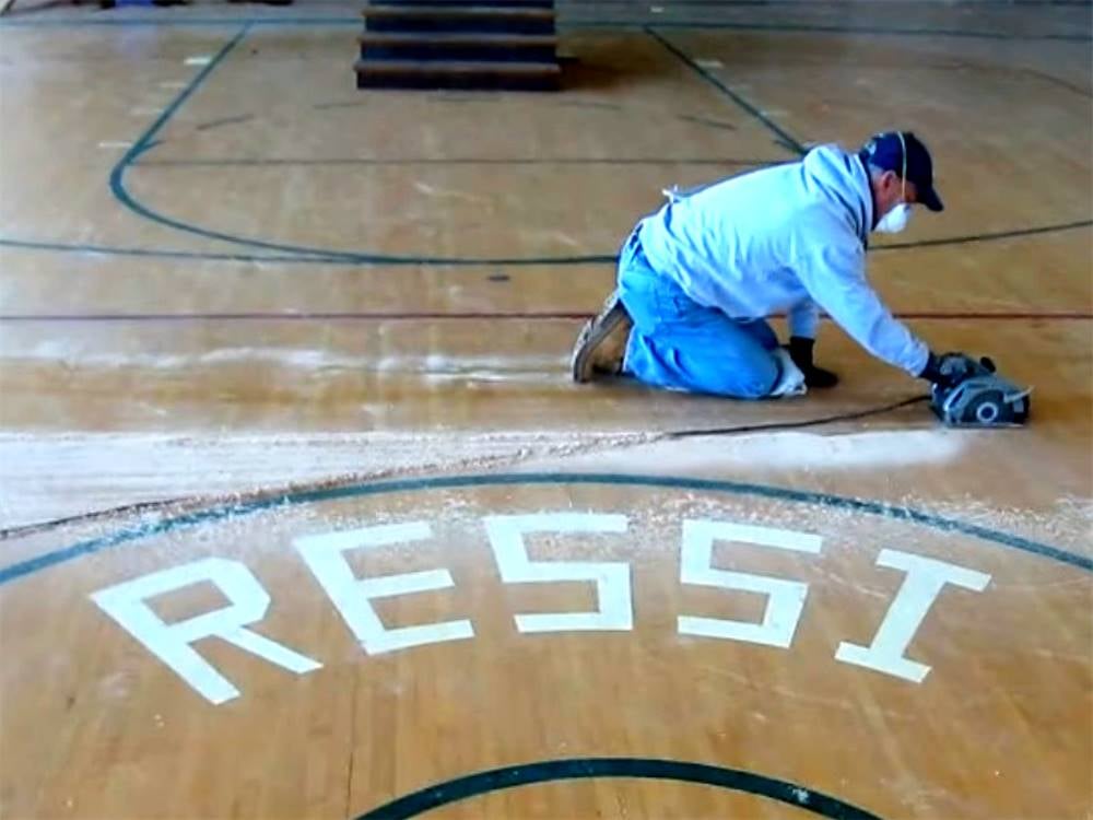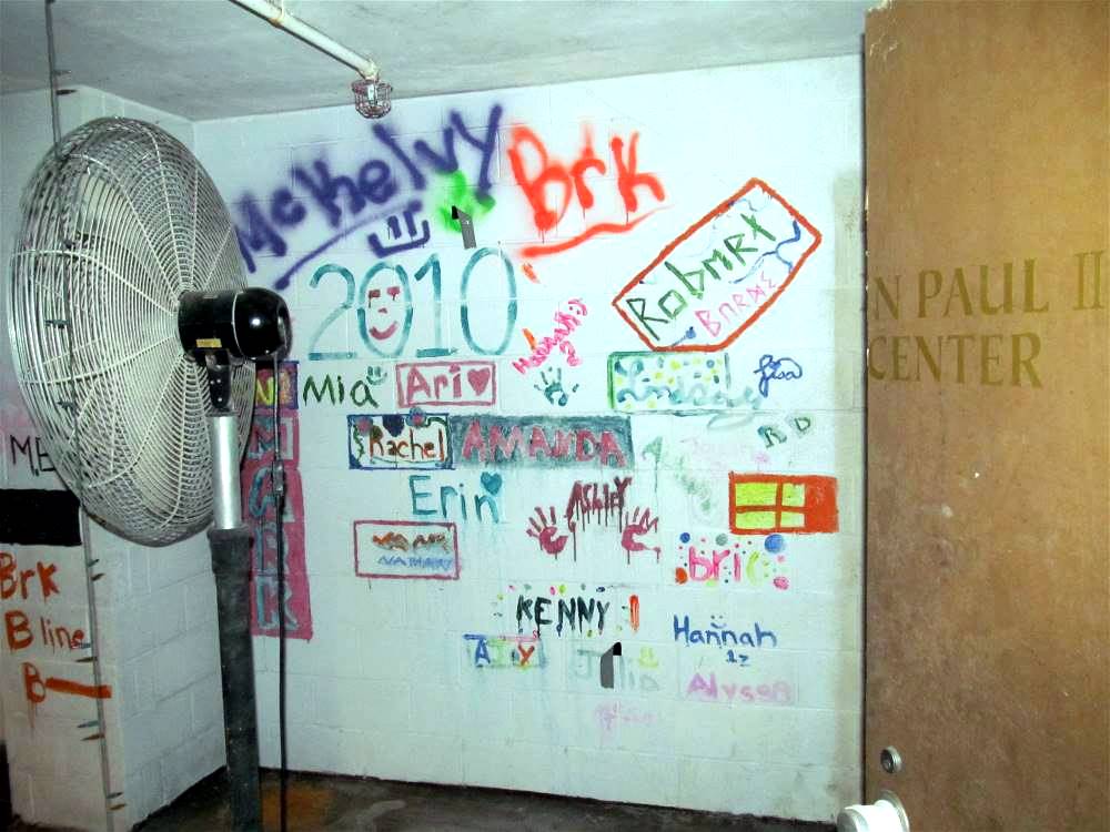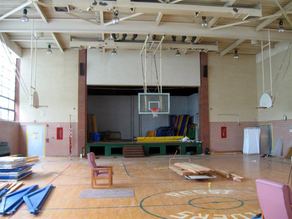 1957 Dedication Bulletin 1965 Dedication Booklet Since then the facility has been used for a variety of reasons, mostly religious education (CCD) classes, pre-school programs, the yearly lenten fish fries and the popular July Fun Flair. The final summer festival on the school grounds was held in 2016. Since then the building has stood abandoned, suffering the ravages of time and weather without funding for proper upkeep. In June 2020 an announcement was made that the plans for the demolition of the Activities Center/Middle School building were under way, with the added space being used for much needed additional parking. As a former student (Class of 1975) it was somewhat heartbreaking walking through the vacant halls. Many memories came flooding back, but were tempered by the constantly dripping water and the stagnant smell of mold, especially upstairs. With that in mind, we grabbed a few small souvenirs. My grab bag included a vintage classroom clock that now hangs in my office at work, a holy water container from the library wall that now rests on my living room wall, a pencil sharpener from my 8th grade homeroom and a gymnasium rules placard that now serves the same purpose at the West Penn Recreation Center in Polish Hill. Others went a bit further with the preservation of iconic Ressi Raider souvenirs. In October, a group of Ressi alumni led by Doug Brendel managed to secure the center section of the gymnasium floor, with the Ressi Raider logo. Harry Patterson had the honor of making the precise cut and the floor boards were taken into storage by Fred Hartman, whose father Ben was a long-time Raider basketball coach. Demolition of the building began