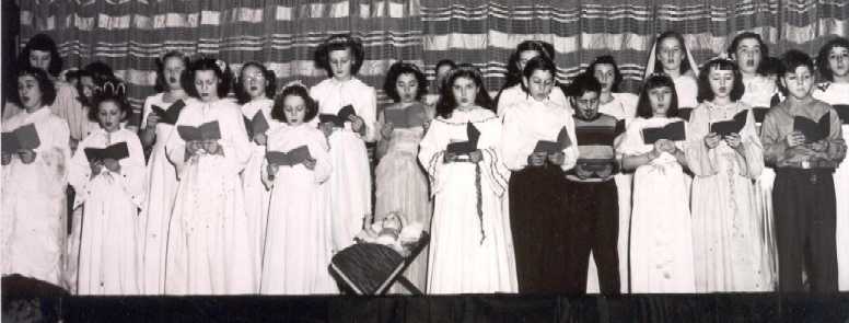This is a photo of one of the 6th Grade classes at Resurrection Elementary taken in June 1950. Below is a photo from their Christmas Play in December 1949. Click on images for larger photos * Photos provided by John Stich * |