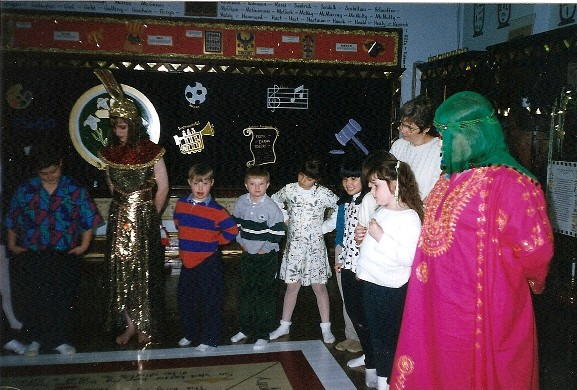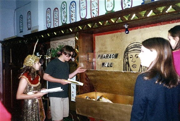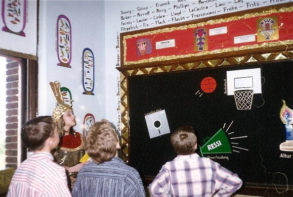 Here are several photos from 1996 showing a special school project completed by the graduating Class of '96 known as "The Ressi-Rected Tomb. Knowing that the old school building would be closing for good after the school year was complete, the classmates transformed one of the rooms into a tomb of sorts, a timepiece full of information about the Age of the Pharoahs and the Era of the Ressi Raiders. Not only was it an artistically significant endeavor, it was also quite an educational experience. The students learned many Egyptian customs and even mastered some hieroglyphics. Once completed, the scholars showcased their creation with a hands-on seminar for the other students in the school. The project required considerable effort and time from the eighth graders. For several years, the room remained as the students left it, much like the mystical tombs beneath the pyramids. It was symbolically unearthed by contractors in 2003 during the construction of Creedmoor Court Apartments. Click on images for a larger picture * Photos provided by Resurrection Archives * |
