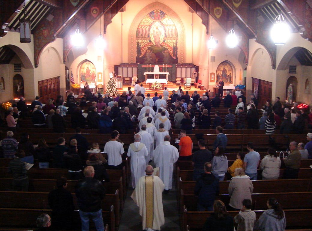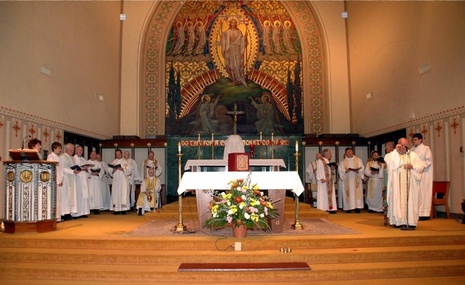 On November 23, 2008, a special Mass was celebrated at Resurrection Church to honor the former Pastors, Parochial Vicars and Deacons who have served at Resurrection. Also in attendance were several Sons of the Parish who entered the priesthood. The Mass was one of Resurrection's special events leading up to the church's 100th Anniversary. Fifteen priests, including former pastors Father Edward Trzeciakowski and Father John Grosko, were present to concelebrate Mass with Resurrection's current pastor, Father Frank Mitolo. The special guests were treated to a catered dinner before the Mass. After the celebration, an informal social was held in Father Quinn Hall (the former Garden Room) where the priests were able to mingle with parishioners and friends. Pictured above: Click on images for a larger picture * Photos provided by Harmonie King and Clint Burton * |