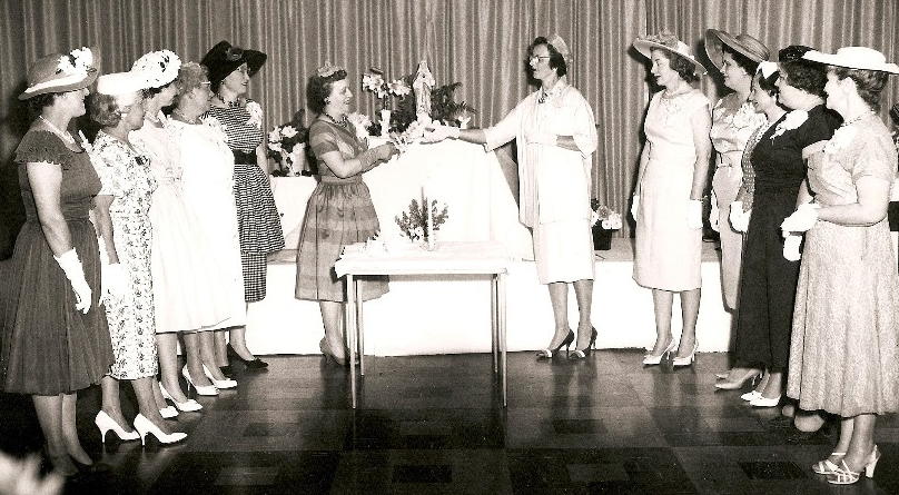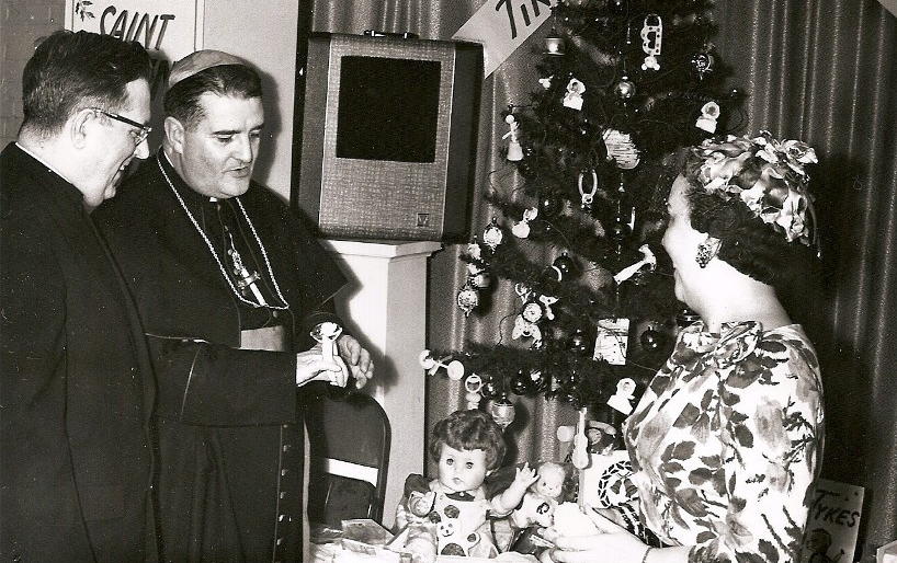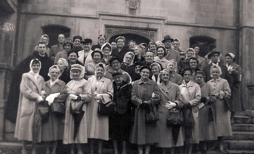 The Resurrection Women's Guild and Christian Mothers gathered in September 1959 for an Installation Tea. Pictured here are Catherine Klueber, Mildred Giel, Mary Bauer, Edna Kerrigan, Mary Capuano and Lucille Newman. Seated is Ruth Senneway. Members gather around Monsignor Keefer in September 1959. Not sure what is happening here but the ladies are having fun! A pilgramage to Loreto, Pa. on November 1, 1959. A gathering to honor Mary. Preparing the turkey for the annual Thanksgiving Day card party are Mrs. James Redington, Mrs. Joseph Lauda, Mrs. Richard Bauer and Mrs. Edward Langer. Bishop John Wright spoke at the Christmas Party on December 15, 1959. Bishop Wright and Monsignor Keefer with Mrs. Charles Kerrigan. The Resurrection Women's Guild and Christian Mothers were the special guests of Congressman Jim Fulton when they visited Washington D.C. in May of 1960. |