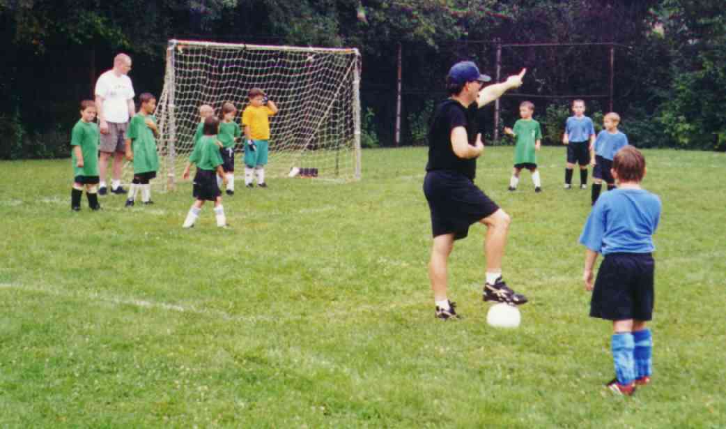 Coach... I mean Ref Moe directs traffic during a pause in the game. The Light Blue PeeWees went on to defeat the Green PeeWees, 3-2. |