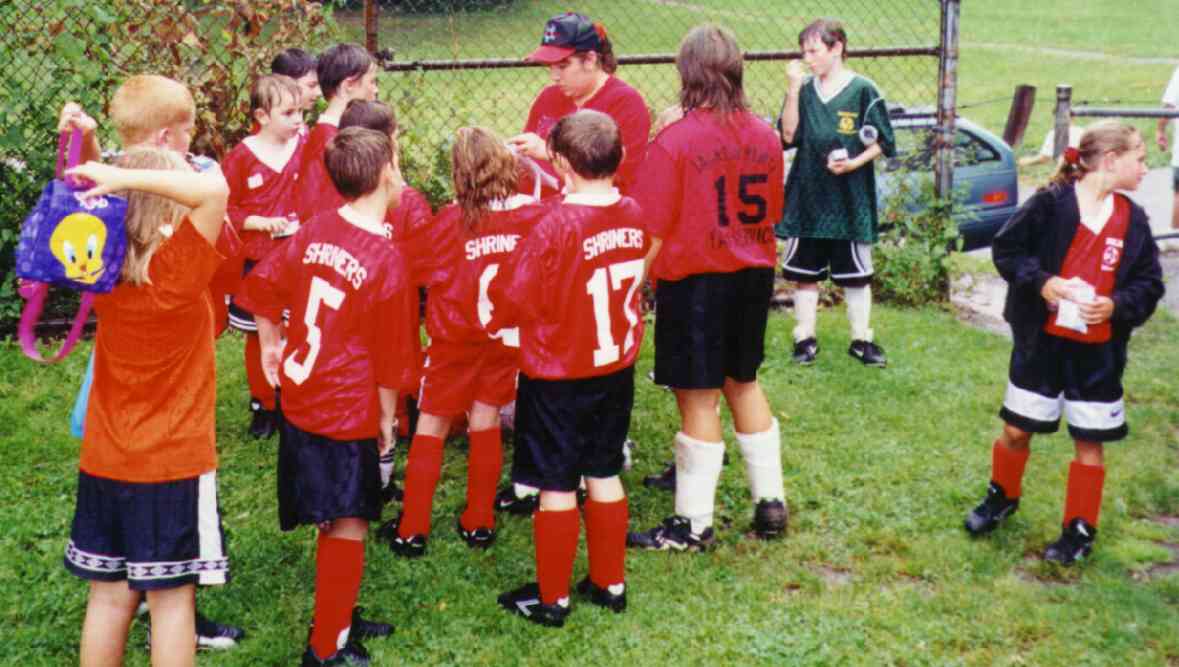 Jody Lackey hands out picture forms to her Shriners team after their game.