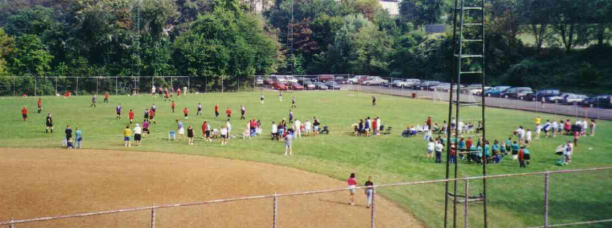 Here's some mid-afternoon Senior Division action, after the rains ceased, on the lower field. All-in-all it was a great opening day and an excellent start to what should be a fine soccer season at Moore Park.
