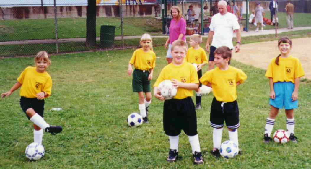 The Gold PeeWees take time out from their warm-ups for a quick photo.
